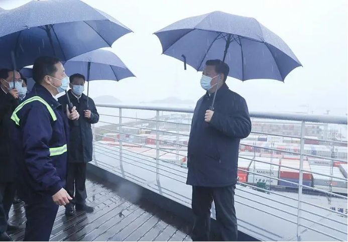 △2020年3月29日,習近平總書(shū)記在浙江寧波舟山港考察調研??疾旆稻┎蛔?0天,總書(shū)記在中央財經(jīng)委員會(huì )第七次會(huì )議上,首次提出構建新發(fā)展格局。