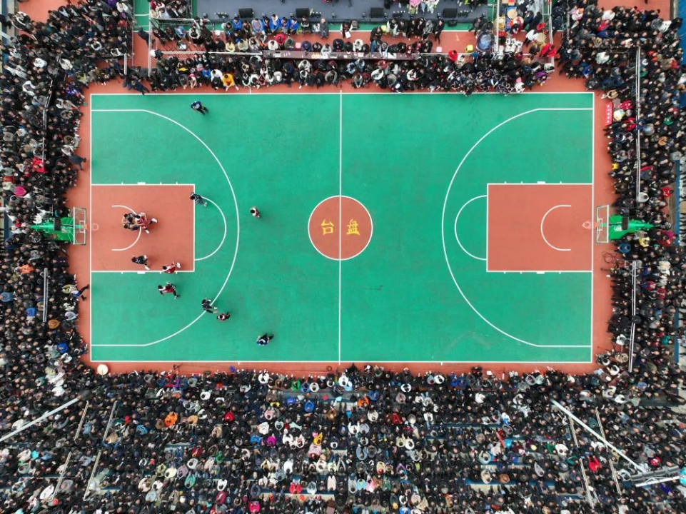 這是2023年3月27日在貴州省黔東南州臺江縣臺盤(pán)村拍攝的貴州省首屆“美麗鄉村”籃球聯(lián)賽總決賽比賽現場(chǎng)(無(wú)人機照片)。新華社記者歐東衢攝